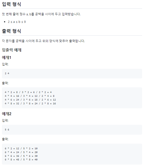 그 예로 a = 2, b = 4 일 때의 출력은 다음과 같습니다.