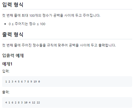 # 입력받은 정수로부터 출력할 값을 새로운 배열에 저장하고, 0이 나오면 for문을 탈출