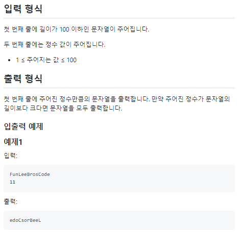 print(string[-1 : -n-1 : -1])'Python > [코드트리]' 카테고리의 다른 글