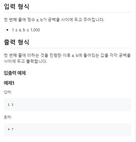 2개의 정수 a, b를 입력받아 b를 a에 더한 후, 다시 a를 b에 더한 뒤의 결과를 출력하는 프로그램을 작성해보세요.
