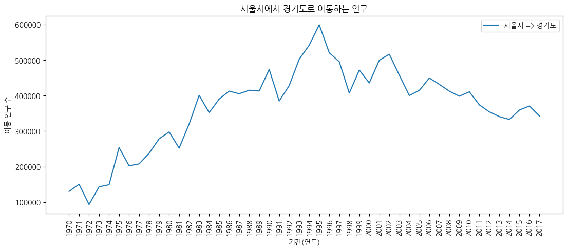 plt.title("서울시에서 경기도로 이동하는 인구")