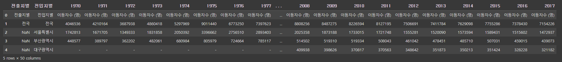 df = pd.read_excel('/content/drive/MyDrive/hana1/data/시도별 전출입 인구수.xlsx',