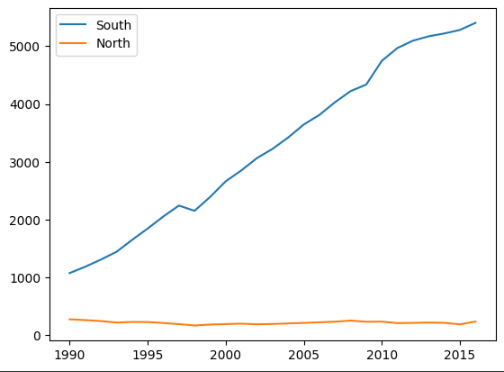 markersize = 5, color = 'blue', label = "서울 => 전남")