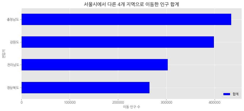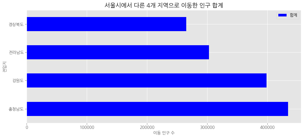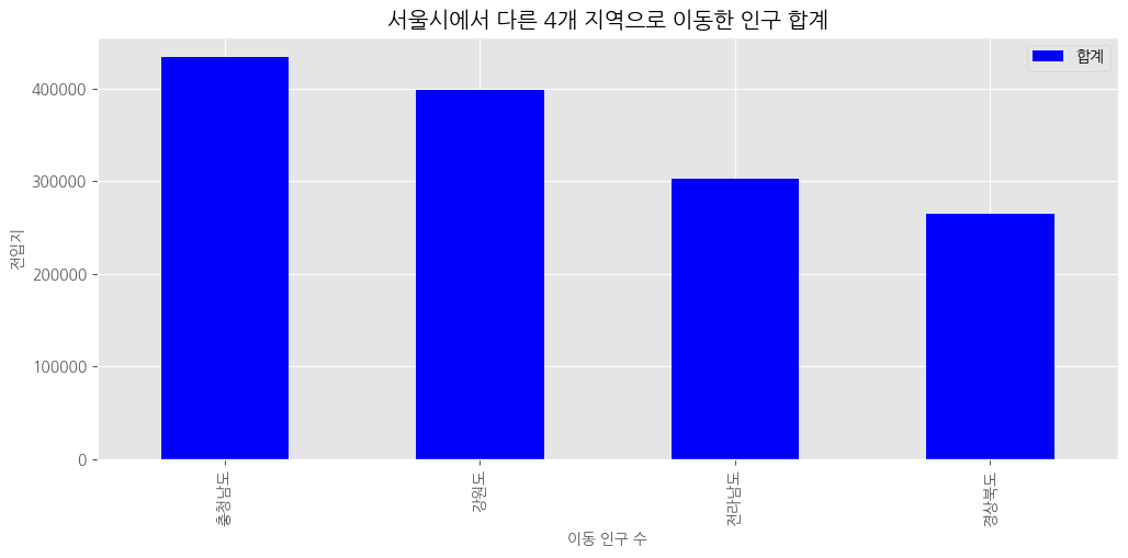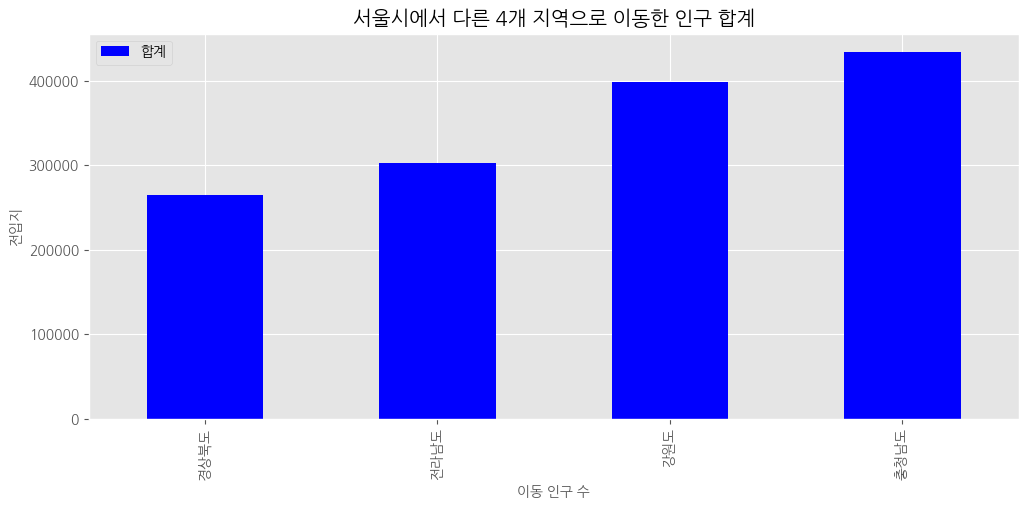 plt.title("서울시에서 다른 4개 지역으로 이동한 인구 합계")
