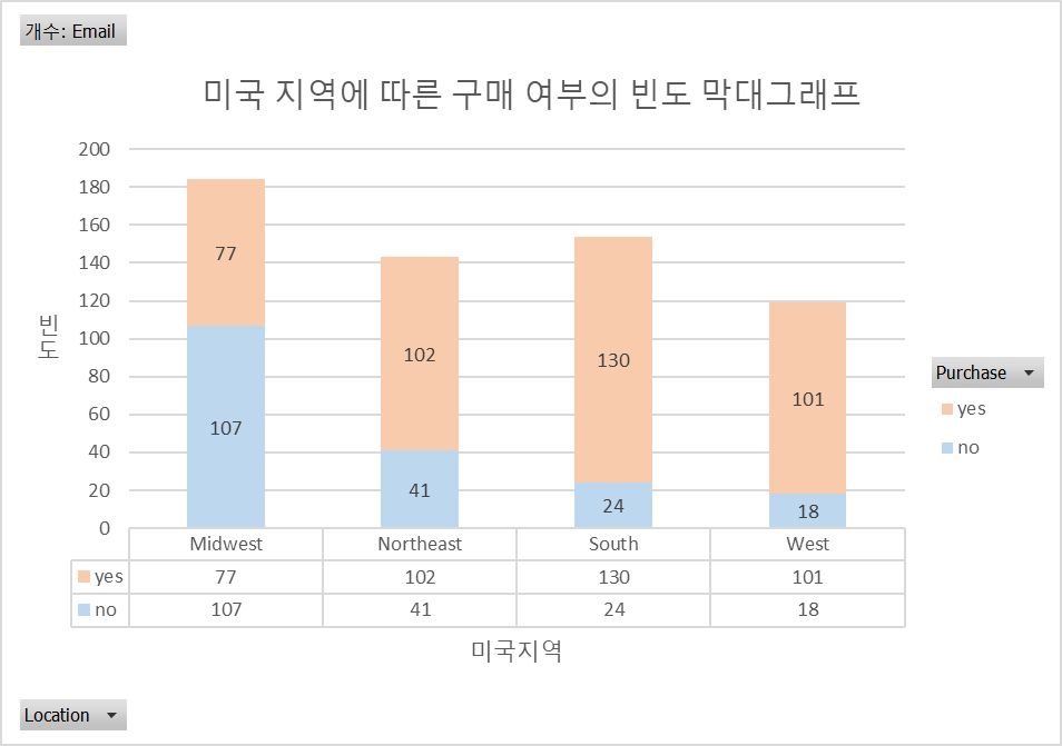 표 선택 - 삽입 -차트 - 누적 세로 막대형