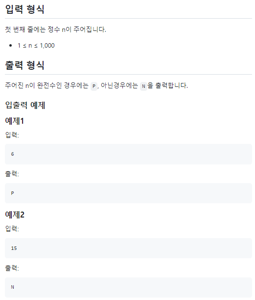 # sum_val과 n이 같다면 P을, 다르다면 N을 출력합니다.