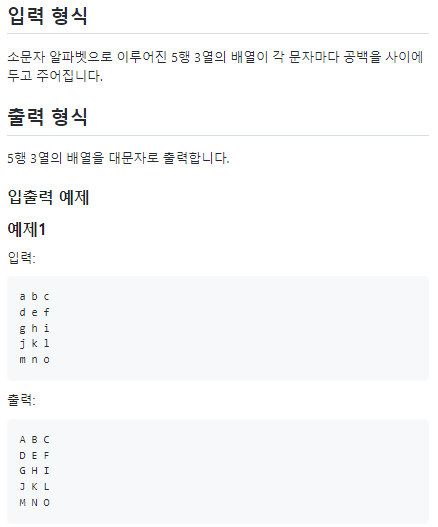 3행 3열의 배열 두 개가 주어지면 두 배열의 같은 위치에 있는 숫자의 곱을 출력하는 프로그램을 작성해보세요. # 첫 번째 2차원 배열을 구현해 정수를 입력받습니다. arr_1 = [ list(map(int, input().split())) for _ in range(3) ] input() # 두 번째 2차원 배열을 구현해 정수를 입력받습니다. arr_2 = [ list(map(int, input().split())) for _ in range(3) ] # 2차원 배열을 구현합니다. arr_3 = [ [0 for _ in range(3)] for _ in range(3) ] # 두 배열의 곱을 새로운 배열에 담습니다. for i in range(3): for j in range(3): arr_3[i][j..